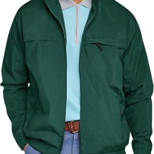 Men’s Lightweight Full Zip Jackets Golf Stand Collar Bomber Jacket Casual Windbreaker Outwear