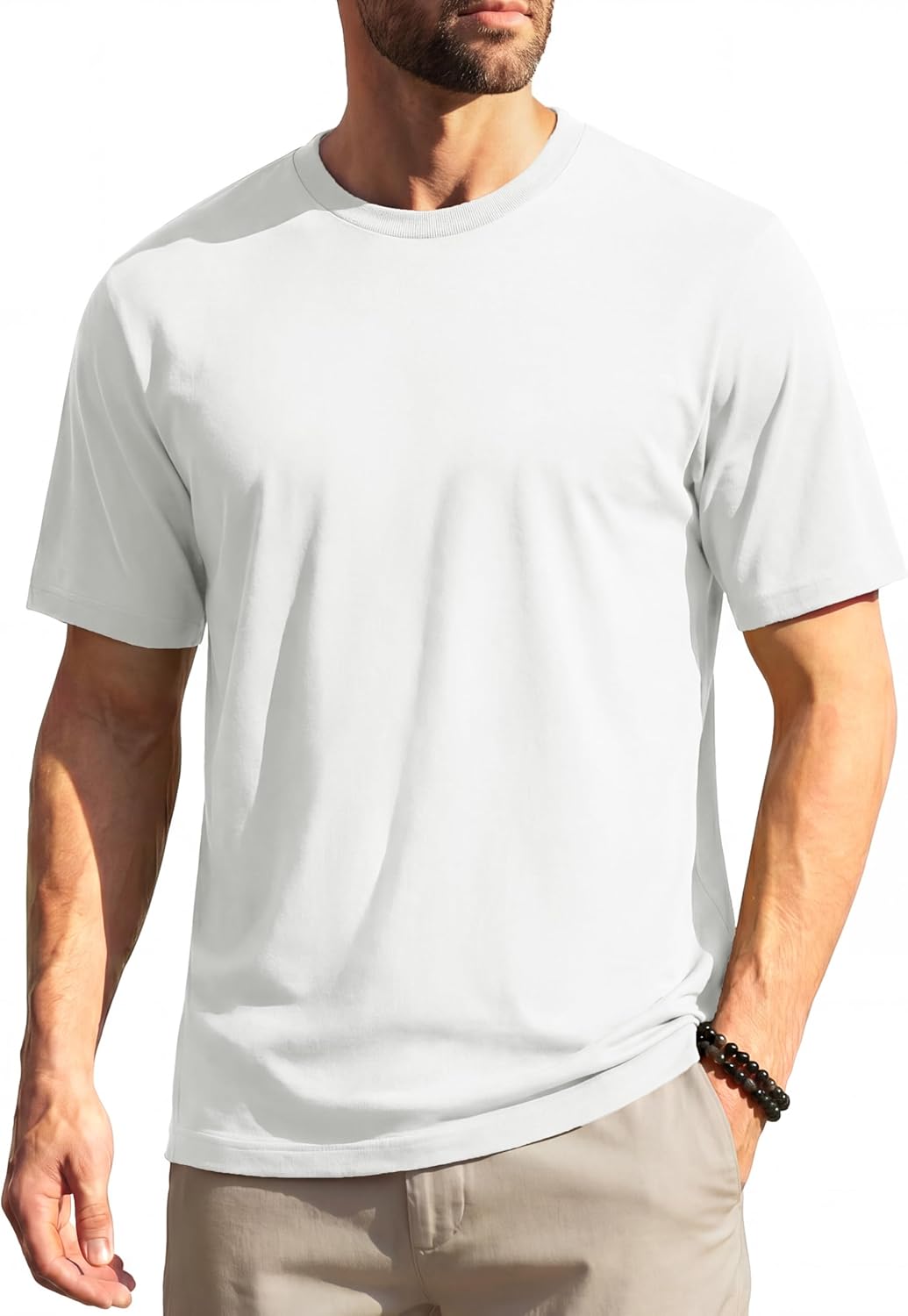 - Match: Men’s casual T-shirt is suitable for wearing alone or as base layer. Can be paired with jeans, shorts, or pants, and can also be easily paired with daily or fashionable styles. It can also be paired with jackets, suits, and jackets to create a formal look